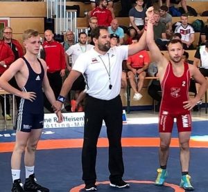 Im bayrischen Burghausen sichert sich der Eschbacher Fliegengewichtler am vergangenen Wochenende die Bronzemedaille im griechisch – römischen Stil. Damit schreib Nick Scherer erneut Vereinsgeschichte. Neben vielen ersten Plätzen bei Deutschen Jugend und Junioren Meisterschaften, ist diese Bronzene, die erste Medaille im Erwachsenenbereich. Die Ringerabteilung des SVE 1967 ist stolz, einen so erfolgreichen Sportler in ihren Reihen zu haben. Nach wie vor kämpft Nick die Turniere für seinen Heimatverein, bei den Mannschaftskämpfen wird er im Herbst wieder für den Erstligisten TuS Adelhausen auf die Matte gehen. Man darf gespannt sein, wie der Bundestrainer auf den Erfolg reagiert und zu welchen höheren Aufgaben er Nick berufen wird.